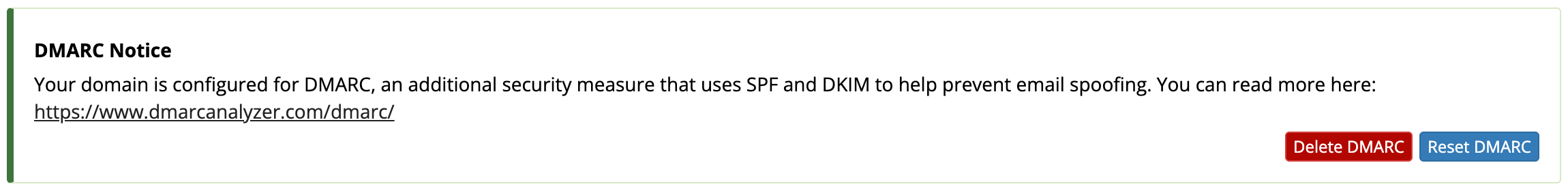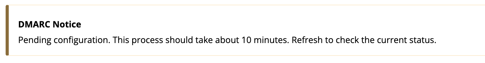 If your "DMARC Notice" section contains a different message that warns you about not being able to configure your domain for DMARC, skip to the next section of this guide for more information.