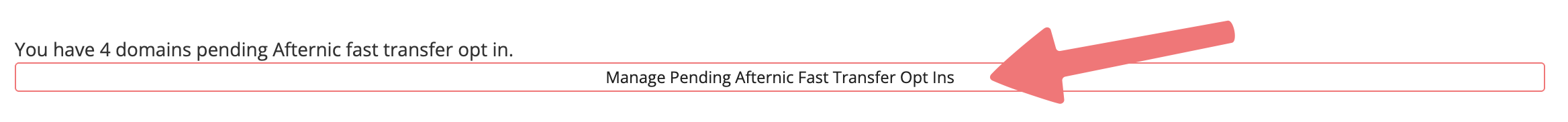 On the Domain Management page, click on the button labeled "Manage Pending Afternic Fast Transfer Opt Ins". This button should be located right above your list of domains.
