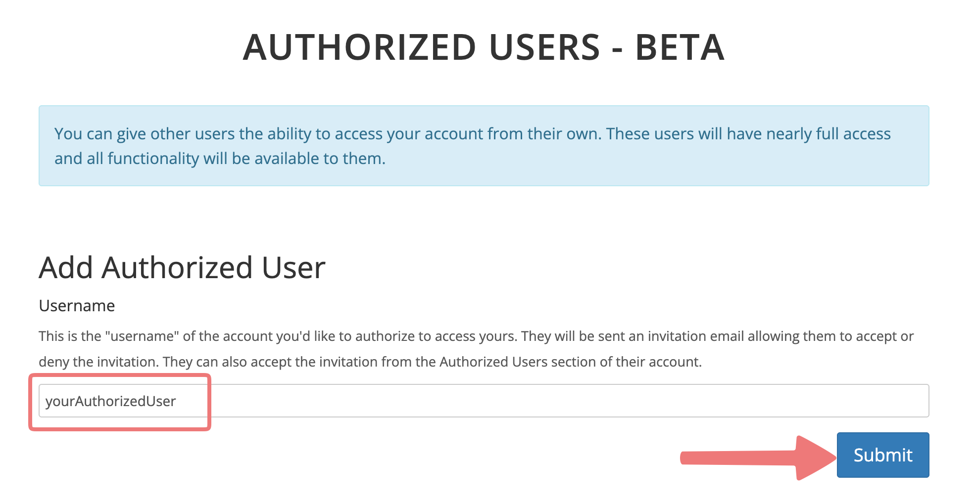 That's it! Now your authorized user will be able to access your account directly and help with setting things up. For more info on the feature and how it compares with our "subaccount" feature, you can review this guide: