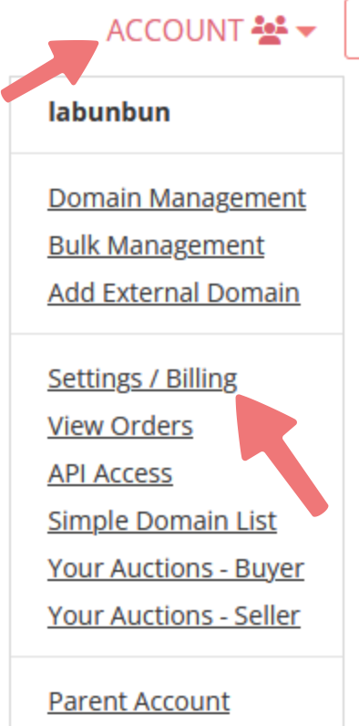 You'll be logged directly in to your subaccount. Click on ACCOUNT in the top-right corner and select "Settings / Billing" from the list.