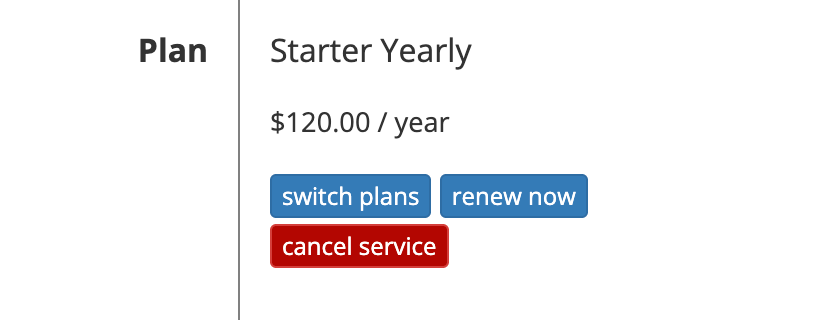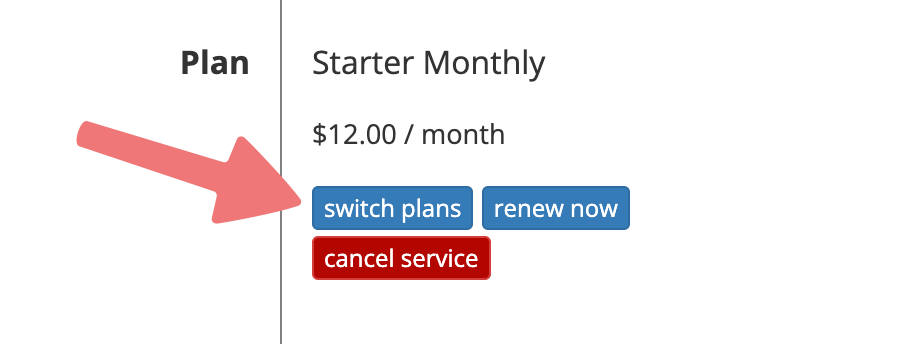 You'll be directed to the Easy PHP hosting dashboard for your domain. Scroll down to the "Plan" section, and click the button labeled "switch plans".