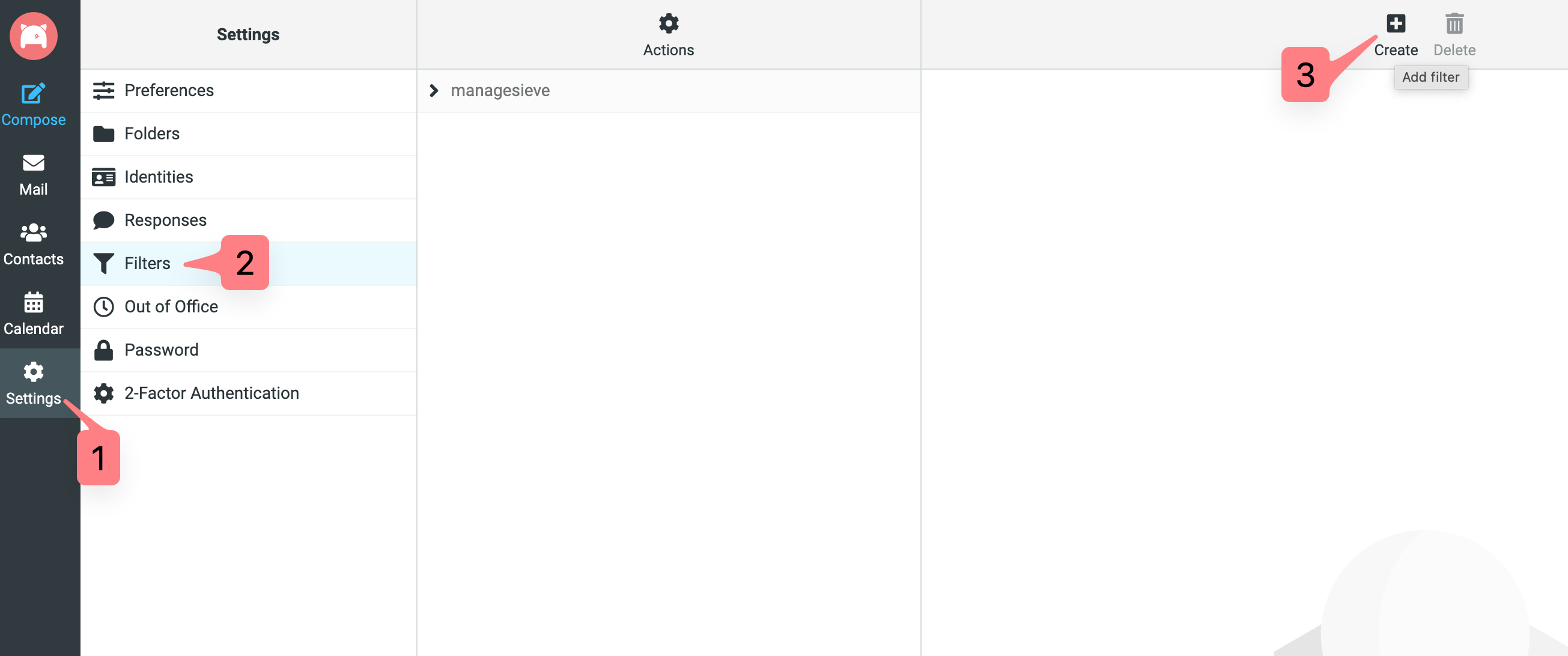 Click on Settings, then Filters, then Create.