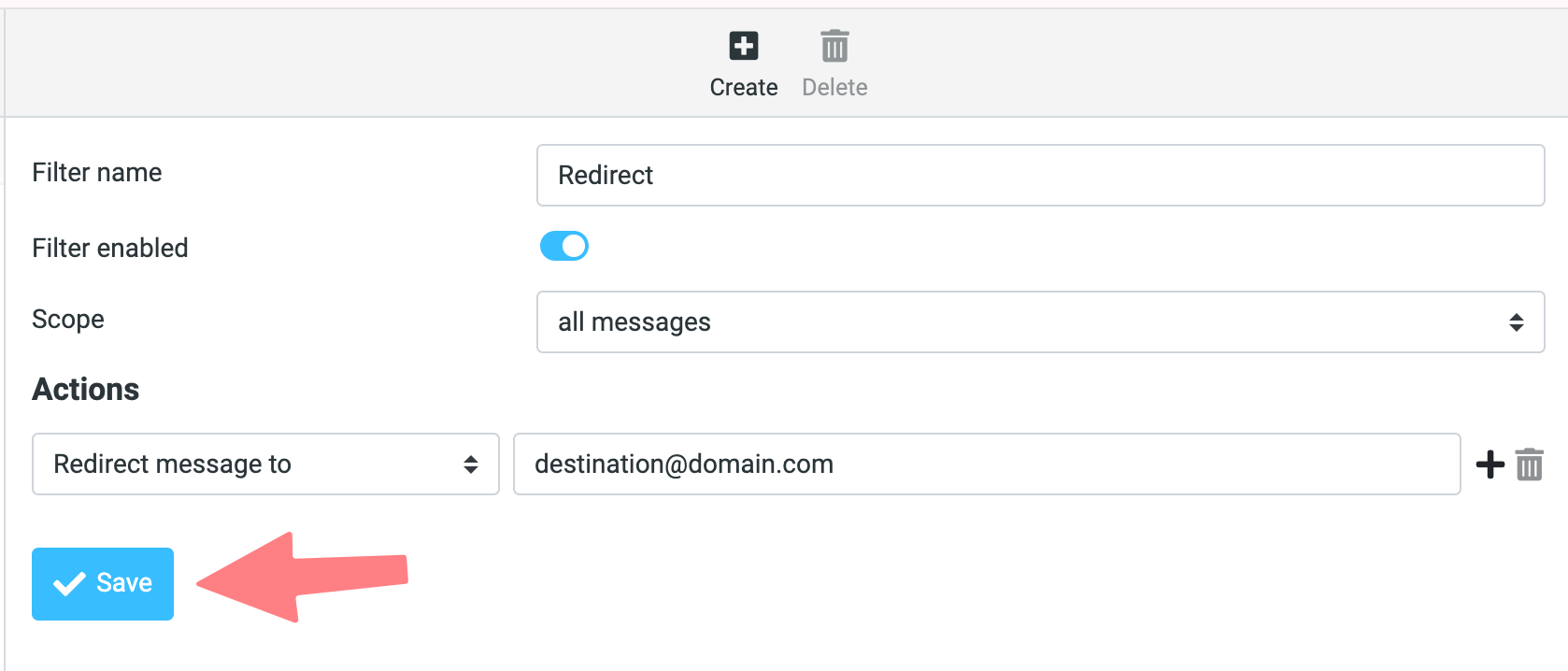 That's it. Now any message sent to this hosted email account will be both delivered to the Porkbun mailbox, and also forwarded to the destination email you specified in the filter!
