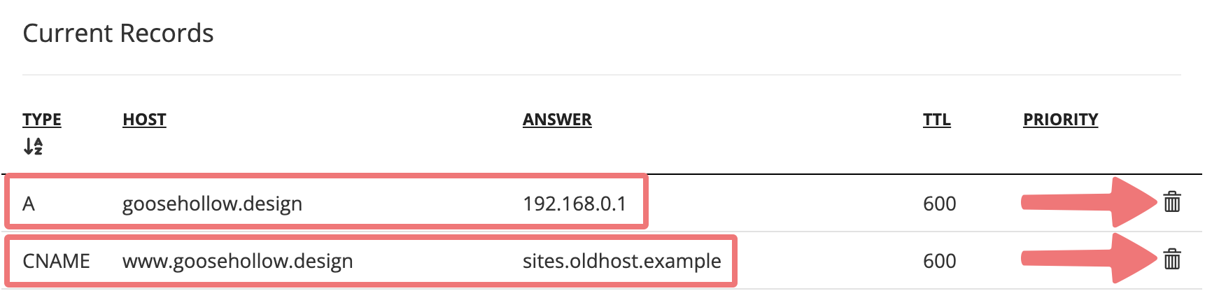 For pointing your domain to hosting with A records, you'll need to first obtain the IP address or addresses of your web server from your web hosting company. Once you have this information, you must remove your existing A records then add A records to your DNS configuration that point directly at your web server's IP address.