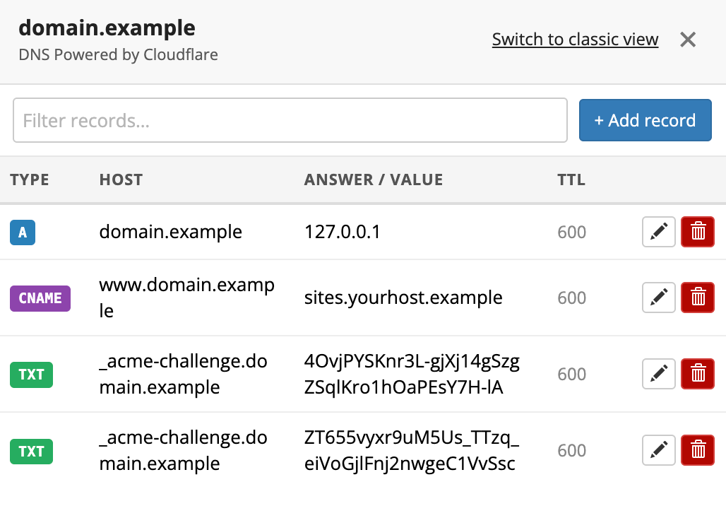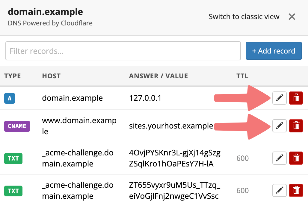 How to edit existing DNS records