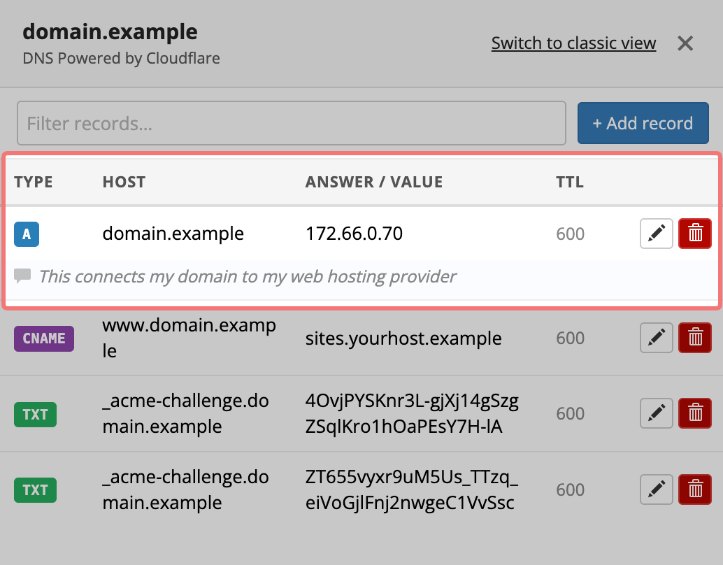 For more specific information about adding new DNS records and what the different record types mean, check out our dedicated guide on adding DNS records.